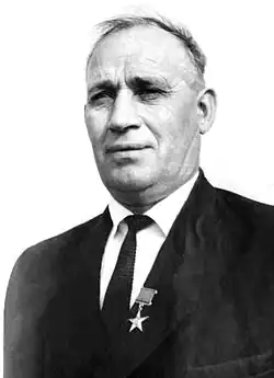 «За ваши исключительные заслуги перед государством, выразившиеся в получении в 1947 году в обслуживаемых колхозах урожая пшеницы 22,5 центнера с гектара, Президиум Верховного Совета СССР своим Указом от 24 февраля 1948 года присвоил Вам звание Героя Социалистического Труда»