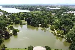 Машзее — искусственное озеро, созданное в 1934—1936 годах на месте болота. Город планировал создать здесь озеро ещё во времена Веймарской республики (1918—1933), но тогда проект не был осуществлён. Инициативу подхватили нацисты в идеологических целях, провозглашая такие лозунги, как культ коллективных мероприятий, народ, обретающий счастье в труде, здоровый досуг. На берегу озера возвышаются колонна и скульптура, напоминающие о той эпохе. В основании колонны угрожающий немецкий орёл и пустой круг, ранее украшенный фашистской свастикой. Летом каждый час отходит прогулочный катер. Возле Машзее находится кладбище советских военнопленных, на котором установлен мемориал, автором которого является скульптор Николай Мухин-Колода[7].
