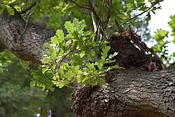 Типичные растения заповедника (слева направо): 1) дуб черешчатый; 2) тополь чёрный; 3) шелковица белая; 4) гребенщик ветвистый; 5) Smilax excelsa. | ||||||||||