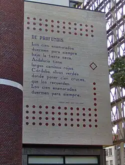 • В 2005 году стихотворение Гарсиа Лорки «De profundis» было нанесено на стену одного из зданий в центре Лейдена (Нидерланды). Оно стало последним в серии из ста одного аналогичного памятника всемирно известным поэтам в рамках культурного проекта «Wall poems»[23].