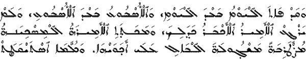 Оригинальный текст (ар.)وَقَدْ فَاتَ ٱلْيَوْمُ بَعْدَ ٱلْيَوْمِ، وٱلْأُسْبُوعُ بًعْدَ ٱلْأُسْبُوعِ، وَلَمْ يَرْجِعْ ٱلْأَمِيرُ ٱلْأَكْبَرُ كَذَلِكَ، وَمَكَثَتِ ٱلْأَمِيرَة ٱلْمِسْكِيَنةُ مًضْطَرِبَةً مَشْغُولَةَ ٱلْبَالِ عَلَى أخَوَيْهَا. وَكُلَّمَا ٱسْتَيْقَظَتْ…
