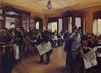 В 40-е годы XIX века в Петербурге открылась первая кофейня высшего разряда — «Доминик», сыскавшая популярность у всех сословий[84]. К началу XX века в городе открылось множество кофеен, часто располагавшихся рядом с местами гуляний[85]. На рубеже веков кофейни или на французский манер «кафе» приобрели статус фешенебельных заведений, всё больше приобретавших черты ресторанов, где помимо завтраков подавали обеды и ужины, устраивали концерты и бильярдные[89]. Большой популярностью также пользовались кондитерские, возникшие от конфетных лавок, но в которых можно было за отдельным столиком попробовать сладкие деликатесы[90]. Со временем между кофейнями и кондитерскими стиралась грань, так как и те и другие начали подавать сладости и кофе в своих заведениях[91]. В середине XIX века на волне моды на кондитерские этим названием стали обозначать себя многие стремившиеся повысить свою респектабельность трактиры, внося всё большею неопределённость в изначальный смысл названия[92]. Позже многие бывшие кондитерские перепрофилировались в «кафе-рестораны», чтобы подавать также горячие кушания и алкоголь, такие заведения в шутку называли «кафе-харчевнями»[93].