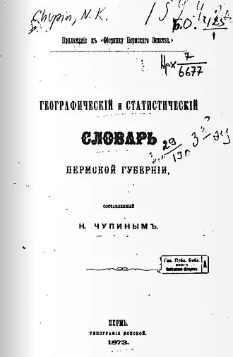 | Географический и статистический словарь Пермской губернии | |