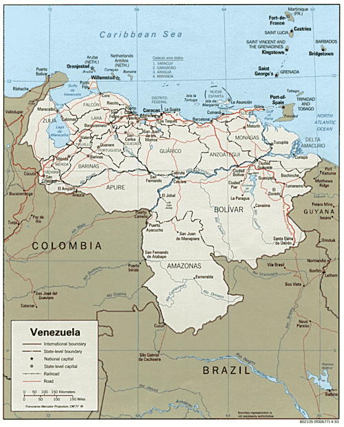Венесуэла — государство на севере южноамериканского континента. Омывается Карибским морем и Атлантическим океаном на севере, граничит с Гайаной на востоке, Бразилией на юге и Колумбией на западе.