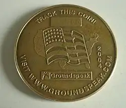 Geocoin представляет собой металлическую или деревянную монету, отчеканенную в стиле медальона, разменной монеты, военного жетона или деревянного 5-центовика, для использования в геокешинге. Первые геокоины были разработаны Джоном Стэнли, для закладки в кладах геокешинга, в качестве его подписи.