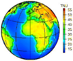 Земля излучает тепло в размере около 47 ТВт (тераватт),[2], что составляет менее 0,1 % от мощности поступающей солнечной энергии. Часть этого тепла приходится на тепло, выделяющееся при распаде радиоактивных изотопов в недрах Земли. Существуют различные оценки этой энергии : от ~10 ТВт до ~30 ТВт.[3]