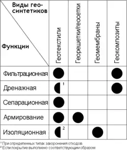 - Геомембраны — сплошное водонепроницаемое рулонное полотно из полиэтилена, рулонный плёночный материал для создания гидроизолирующих прослоек.[1]