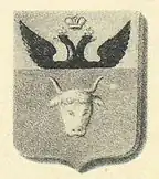 Подобный предъидущему [то есть в верхней части выходящий двуглавый орёл], только нижняя часть вся красная, с изображением золотой воловьей головы[6]. |