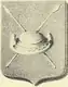 Подобный Украинскому[10] [в верхней части выходящий двуглавый орёл], только нижняя часть вся серебряная и, на ней, две, на-крест-лежащия сабли, с золотыми ефесами, а в образуемых ими углах четыре гусарские кивера[11], чернаго цвета. |
