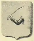 В золотом поле, рука, в латах, выходящая из облаков и держащая саблю. |