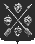 На зелёном поле, две крестообразно-положенные, серебряные стрелы и, между ими, четыре, серебряныя же, кисти винограда. |