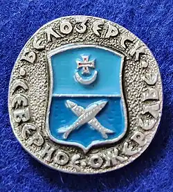 - ↑ СССР. Значок. Серия "Северное ожерелье". Герб Белозерска посл. треть XX в. collections.hermitage.ru. Дата обращения: 2 мая 2023. Архивировано 2 мая 2023 года.
