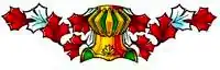 Снизу герб окаймляет синяя с бирюзовым отливом лента с латинским девизомA mari usque admare(лат.) («От моря до моря»), взятым из 71-го библейскогопсалма: «Он будет обладать от моря до моря и от реки до концов земли»[29][34]. В оригинале в 1906 году девиз использовался в законодательной ассамблее Саскачевана[35].