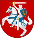 Герб Литовского государства — Витис: в красном поле гербового щита всадник в серебряных доспехах на коне, держащий в правой руке поднятый над головой меч. На левым плечом всадника висит щит, в красном поле которого двойной золотой крест. Рукоять меча, устья ножен, шпоры всадника, удила узды, подковы коня, а также украшения подпруги и другого снаряжения золотые[6][3].