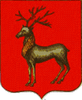 В червлёном (красном) поле серебряный олень, рога, грива и копыта золотые.