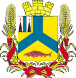 Описание: «В золотом щите геральдический вилообразный лазуревый крест, сопровождаемый внизу червлёной рыбой. В вольной части щита — герб Приморской области. Щит увенчан серебряною о трех зубцах башенною кроною и окружён двумя золотыми колосьями, соединёнными Александровскою лентою».
