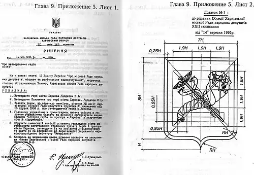 2. 1 2 3 Приложение к Уставу территориальной общины города Харькова, принятом 18-й сессией горсовета ХХІІI созыва 29 ноября 2000 года. Репродукция из книги «Харьковская символика». Х, 2006