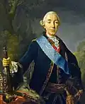 | Пётр Фёдорович | ![]() | Император Всероссийский с 25 декабря 1761г./7 января 1762г. Пётр III Феодорович, Герцог Гольштейн-Готторпский с 1739г., отрёкся от Престола 29 июня/12 июля 1762г., единственный сын Цесаревны Анны Петровны (23 февраля 1728 - 6/19 июля 1762). | Гольштейн-Готторп-Романовы |