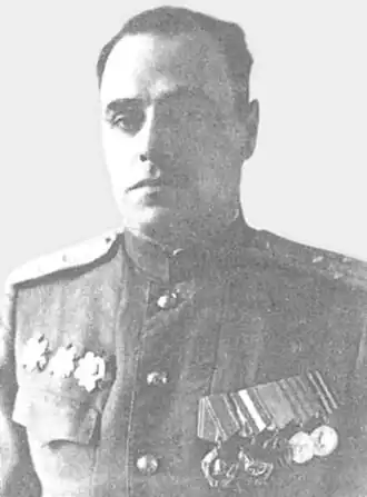 В июле 1944 года был назначен на должность заместителя командира, а в августе исполнял должность командира 11-го стрелкового корпуса, который принимал участие в ходе Львовско-Сандомирской наступательной операции. В декабре того же года был назначен на должность командира 161-й стрелковой дивизии, которая принимала участие в ходе Западно-Карпатской, Моравско-Остравской и Пражской наступательных операций, а также при освобождении городов Новы-Сонч, Прешов, Кошице, Бардеев, Жилина и Моравска-Острава.