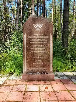 ![]() Памятник на месте перезахоронения евреев Ясеня (слева) на еврейском кладбище Бобруйска | |