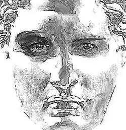 ![]() Голова Гефестиона изваяна из мрамора. Статуя находится в Музее Гетти | |
