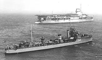 ![]() Вид с линкора «Шарнхорст» на горящий авианосец «Глориес» | |||
