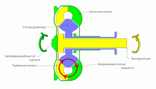 - осевого лопастного насоса, жёстко связанного с корпусом гидротрансформатора. Насос обеспечивает движение жидкости;