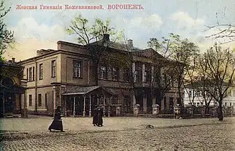 С 1907 по 1918 годы многие девочки из дворянских, мещанских, крестьянских и семей других сословий Воронежской и соседних губерний обучались в Воронежской частной гимназии М. П. Кожевниковой[5]. Гимназия имела права женских гимназий Министерства Народного Просвещения[6]. После окончания 8-го дополнительного класса желающие имели право на получение свидетельства[7] на звание домашней наставницы[8] или учительницы[9].