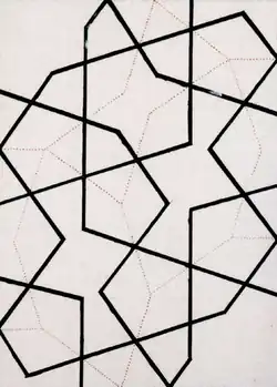 - Реконструкция малого орнамента (толстые чёрные линии) с левой панели, использующего малые плитки гирих.