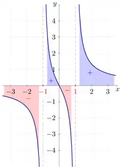 Пример. Рассмотрим несобственный интеграл (см. рисунок). Особые точки подынтегральной функции есть точки -1, 1. Данный интеграл расходится, потому расходится, например, интеграл
