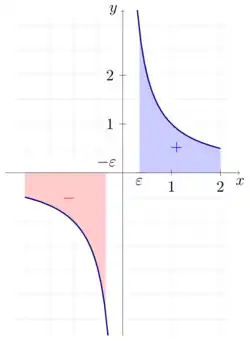 Пример. Рассмотрим несобственный интеграл второго рода (см. рисунок) Он расходится, поскольку расходится, например, интеграл При этом в понимании главного значения по Коши данный интеграл существует и равен нулю: