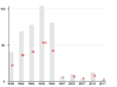 | 1838 | 1862[19] | 1885 | 1928 | 1965 | 1997 | 2007[20] |