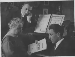 Елена Фабиановна Гнесина с учениками М.Мильманом и А.Клумовым. 1929