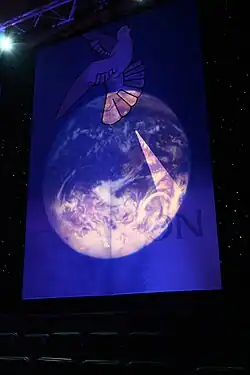 Гобо используются с проекторами и более простыми источниками света для создания световых сцен в театральной области применения. Простые гобо, встроенные в автоматизированные системы освещения, популярны в ночных клубах и других музыкальных заведениях для создания движущихся форм.[26]архитектурного освещения, а также в дизайне интерьера, например, для проецирования логотипа компании на стену.