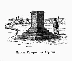 Впоследствии, по инициативе Александра I и при поддержке генерал-губернатора Михаила Воронцова, организовавшего сбор средств среди жителей Одессы и Херсона, в Херсоне был построен гранитный обелиск врачу. На нём изображен барельеф Говарда, детали солнечных часов и надписи на русском и латинском языках: «Говард. Упокоился 20-го января на 65 году от рождения. Alios salvos fecit (Делал других здоровыми). Vixit propter alios (Жил для других)».