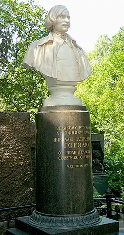 Никола́й Васи́льевич Го́голь (при рождении Яно́вский, с 1821 года — Го́голь-Яно́вский; с 1822 года — Го́голь; 20 марта [1 апреля] 1809, Сорочинцы, Миргородский уезд, Полтавская губерния — 21 февраля [4 марта] 1852, Москва) — прозаик, драматург, критик, публицист, писавший на русском языке. Классик русской литературы[7][8], принадлежащий к русской и украинской культурам[9].