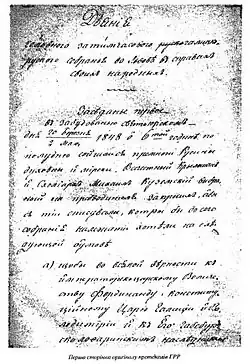 Первая страница протокола заседаний Головны руськи рады, 1848.