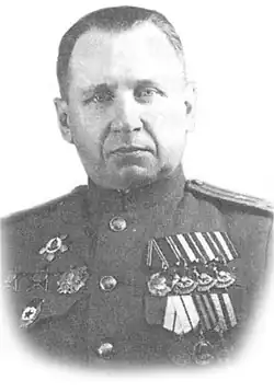 - 1 2 3 4 5 6 7 8 9 10 Великая Отечественная. Комдивы : военный биографический словарь / [Д. А. Цапаев и др. ; под общ. ред. В. П. Горемыкина] ; М-во обороны Российской Федерации, Гл. упр. кадров, Гл. упр. по работе с личным составом, Ин-т военной истории Военной акад. Генерального штаба, Центральный архив. — М. : Кучково поле, 2014. — Т. III. Командиры стрелковых, горнострелковых дивизий, крымских, полярных, петрозаводских дивизий, дивизий ребольского направления, истребительных дивизий (Абакумов — Зюванов). — С. 636—637. — 1102 с. — 1000 экз. — ISBN 978-5-9950-0382-3.