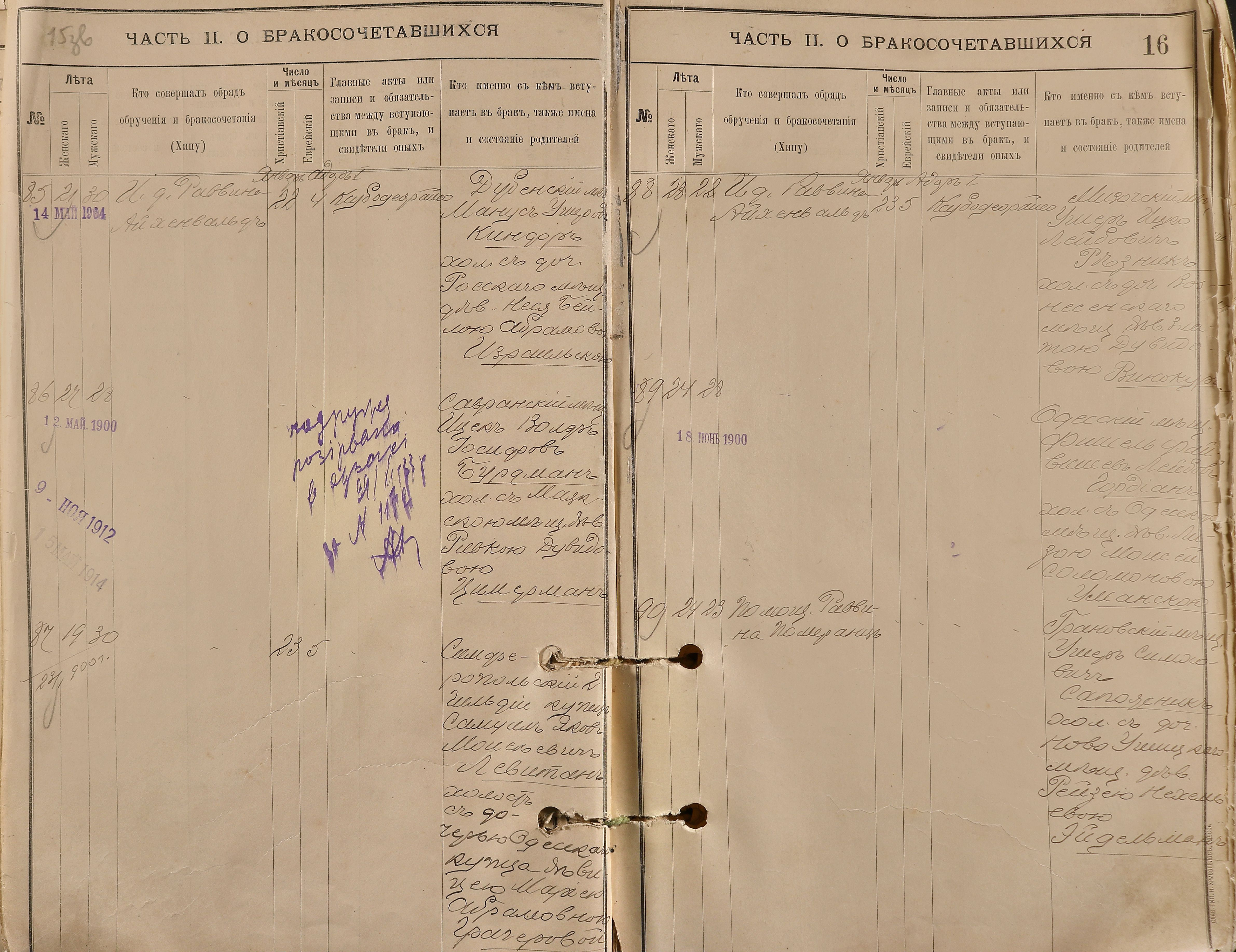 - ↑ Запись о бракосочетании в канцелярии одесского городского раввина