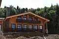 Здание коттеджа двухэтажное. На первом этаже располагается просторная комната отдыха для спортсменов, 3 номера(в одном номере проживает 2 человека), каждый из номеров имеет собственный санузел, на втором этаже находиться 2 номера и хранилища. Все номера и комната отдыха имеют свой выход на террасы или балкон. Со стороны проезжей части предусмотрены два парковочных места, накрытых перголой. На время олимпиады там предполагается размещение трейлеров для обслуживающего персонала спортсменов (врачей, массажистов). Цоколь выполнен из монолитного железобетона с утеплением по наружной стороне и последующей отделкой натуральным камнем. Наружные и внутренние несущие стены — клееный брус. Снаружи дерево покрывается защитными прозрачными составами. Кровля скатная по деревянным лагам, утеплённая минераловатными плитами, покрытие — гибкая наплавляемая черепица по гидроизоляционному ковру.