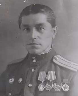 - Орден Красного Знамени (1944, за выслугу лет в Красной Армии)
