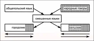 Формирование смешанных языковых формаций происходит в результате взаимодействия региональных обиходно-разговорных форм общепольского языка с сельскими говорами, но в некоторых случаях возможно влияние, и даже очень значительное, других функциональных стилей литературного языка, как, например, публицистического в случае воздействия на смешанный идиом средств массовой информации[1].