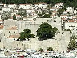 Строительство первых известняковых укреплений вокруг города началось в раннем средневековье, еще в конце VIII в. Более похожие на современные стены очертания укрепления получили уже в XIII в. Так, по плану 1292 года стенами окружён весь город, за исключением монастыря, который перешёл под защиту Дубровника позже, в XIV в. Тогда же в целом стены приобрели современный вид. Комплекс включает в себя башню Минчета, форт Бокар, крепости Ревелин и Ловренац и другие укрепления. О мастерстве дубровницких фортификаторов свидетельствует то, что стены спокойно перенесли сильное землетрясение 1667 года.