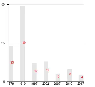 | 1997[14] | 2002[15] | 2007[16] | 2010[17] | 2017[1] |