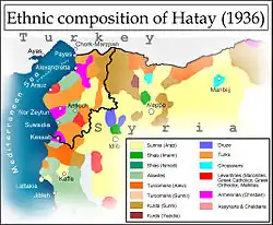 В 1936 году Ататюрк придумал для Александреттского санджака название «Хатай»[1], и поднял в Лиге Наций «Хатайский вопрос». По поручению Лиги Наций представители Бельгии, Великобритании, Нидерландов, Турции и Франции написали для Хатая конституцию, в соответствии с которой он становился автономным санджаком в составе Сирии. Несмотря на некоторые межэтнические конфликты, в середине 1938 года прошли выборы в Законодательную ассамблею, в соответствии с которыми из 40 мест 22 получили турки, 9 — арабы-алавиты, 5 — армяне, 2 — арабы-сунниты, 2 — арабы-православные.