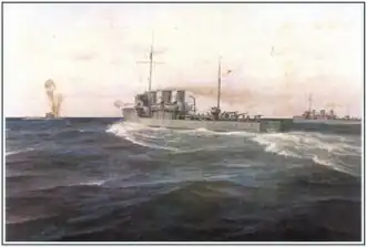 ![]() Потопление подводной лодкой Балтийского флота «Пантера» английского эсминца «Виттория» | |||