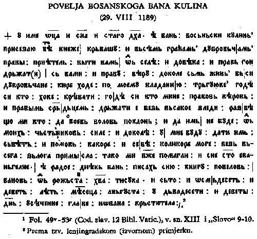 Написана боснийским баном Кулином 29 августа 1189 года. Это первый сохранившийся боснийский документ, написанный на народном старославянском языке, освобождённом от влияния церковнославянского языка, босанчицей. В первый раз упоминается и славянское название города Дубровник, который до этого был известен только как Рагуза (лат. Ragusa).