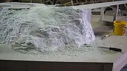 Над созданием макета работали около ста человек в течение пяти лет[3]. Сначала была поставлена несущая подмакетная рама, уложены основы железных и шоссейных дорог. Далее по всему макету установили деревянные рёбра, по их верхней кромке натянули металлическую сетку и нанесли слой гипса (всего было использовано около 15 тонн), из которого создавали окончательные очертания желаемого ландшафта. На оформление квадратного метра поверхности макета уходил примерно месяц труда одного специалиста[4].