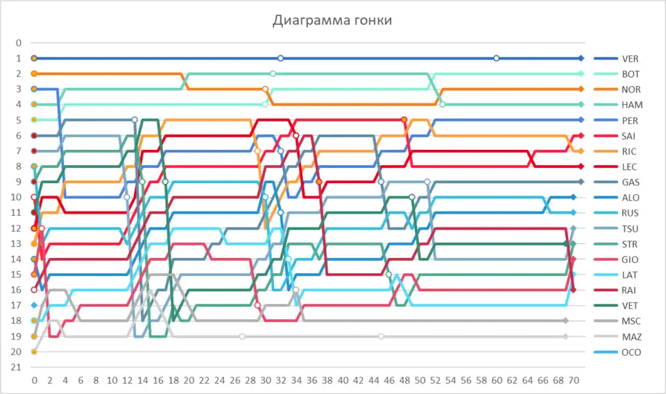 Гонку также выиграл Макс Ферстаппен[2], завоевав впервые в своей карьере «большой шлем»[3]: поул, победа, быстрый круг и лидирование от старта до финиша.