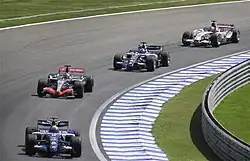 - ↑ Ник Хайдфельд разбил машину в первом повороте и сошёл с дистанции, но был классифицирован, поскольку проиграл лидеру 8 кругов. По словам Архивная копия от 7 ноября 2006 на Wayback Machine Хайдфельда, причиной аварии стали повреждения от поломок в начале гонки.